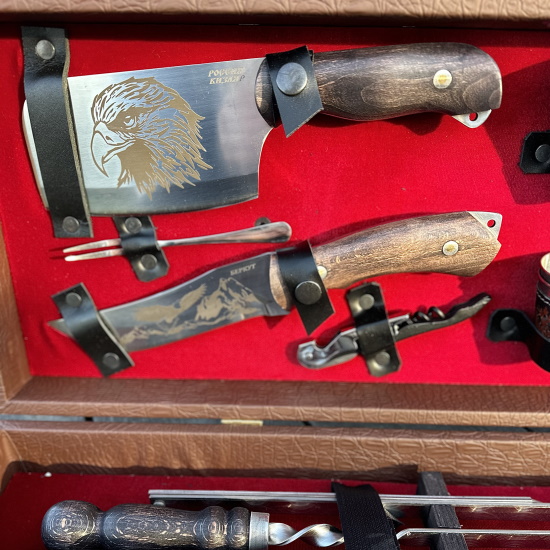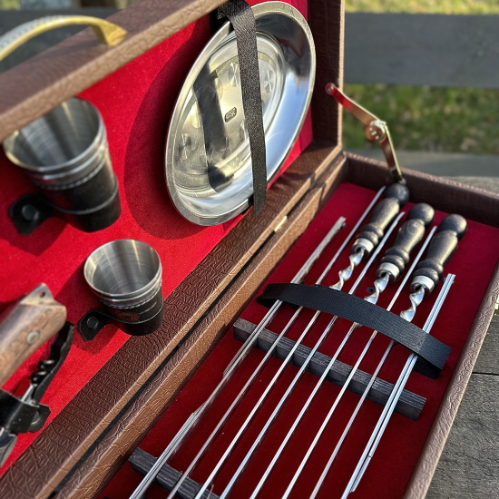 У нас вы можете приобрести современный шашлычный набор, который вам обязательно пригодится для отдыха на природе Отличная и незаменимая вещь на отдыхе на природе!