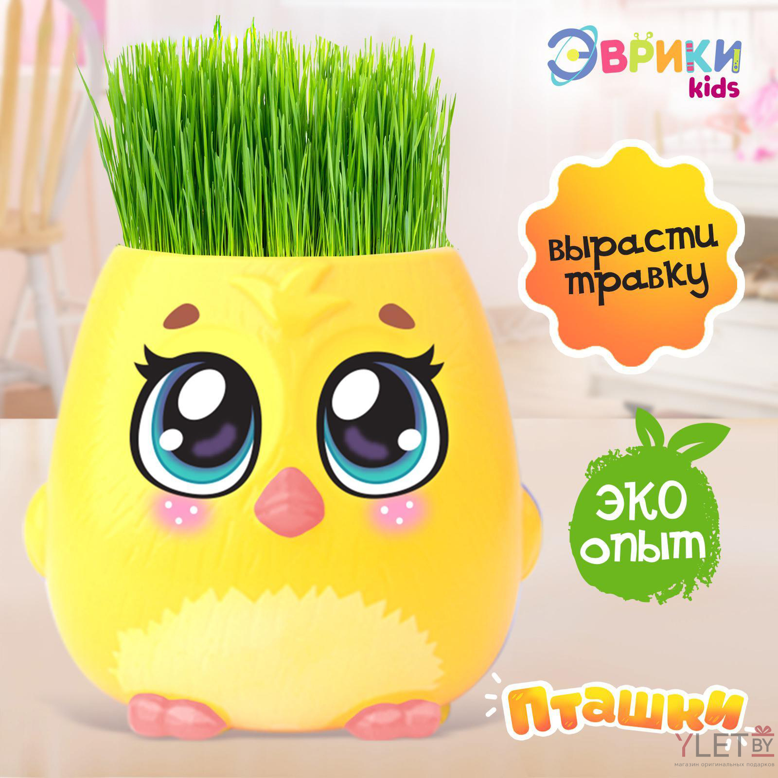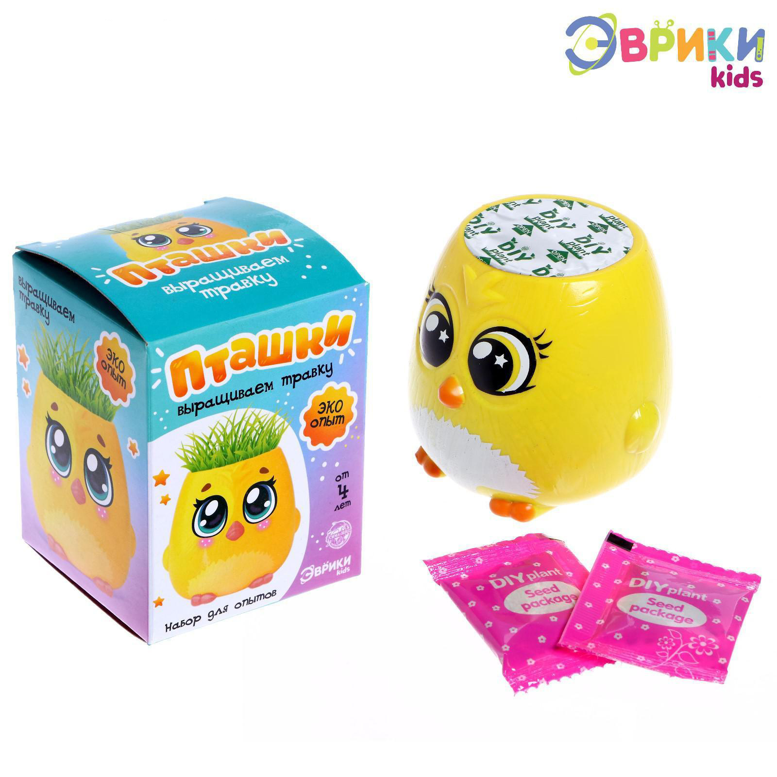 Набор для опытов, для детей «Пташки, выращиваем травку», растение в жёлтом горшочке