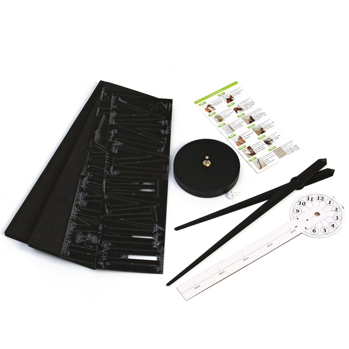 Создавайте часы в собственном стиле, проявляйте изобретательность и креативность. Не обязательно располагать числа по кругу — придайте аксессуару необычную форму, поменяйте диаметр циферблата, используйте не все элементы. Комплектующие легко клеятся на стену и без труда снимаются.