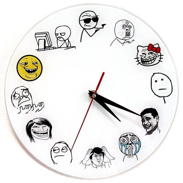 Оригинальные, высокого качества исполнения часы trollface. Диск выполнен из стекла. Механизм хода обычный - тикающий.