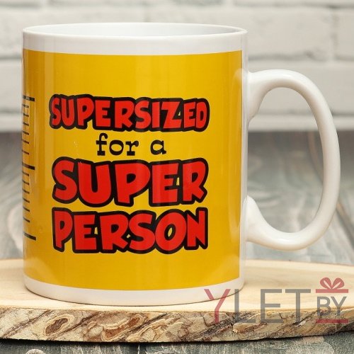 Большому кораблю — большое плавание! А, нет, что-то не то. Вот как правильно: большому человеку — большая кружка! Причем «большому» — это не обязательно относится к размерам. Можно быть хрупкой девушкой и все равно отлично смотреться с купленной в магазине Мистер Гик Гигантской кружкой Supersized for a Super Person.