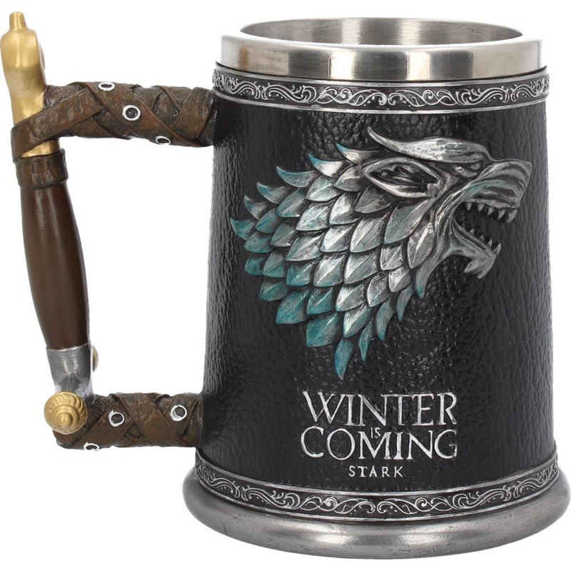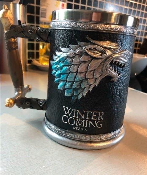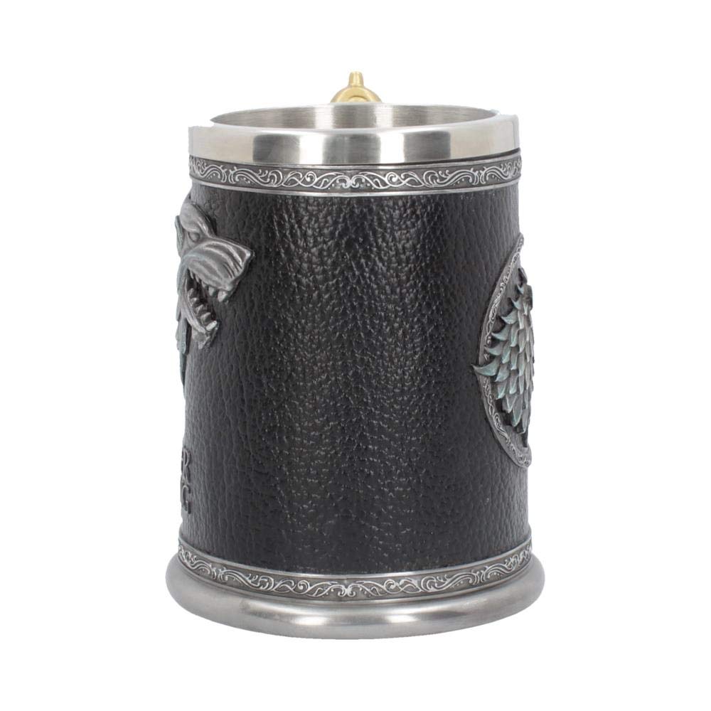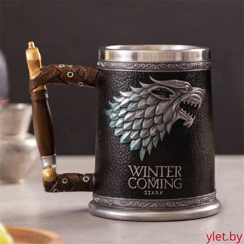 Логотип Стака, нанесённый на корпус кружки с легким окрашиванием в холодные оттенки, великолепно передаёт дух сурового севера и таинственного мира Вестероса. Кружка изготовлена из качественной нержавеющей стали, что делает её не только стильной, но и очень прочной. Она легко переносит удары и не боится повседневного использования.