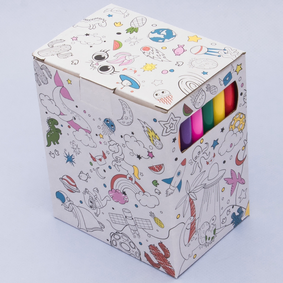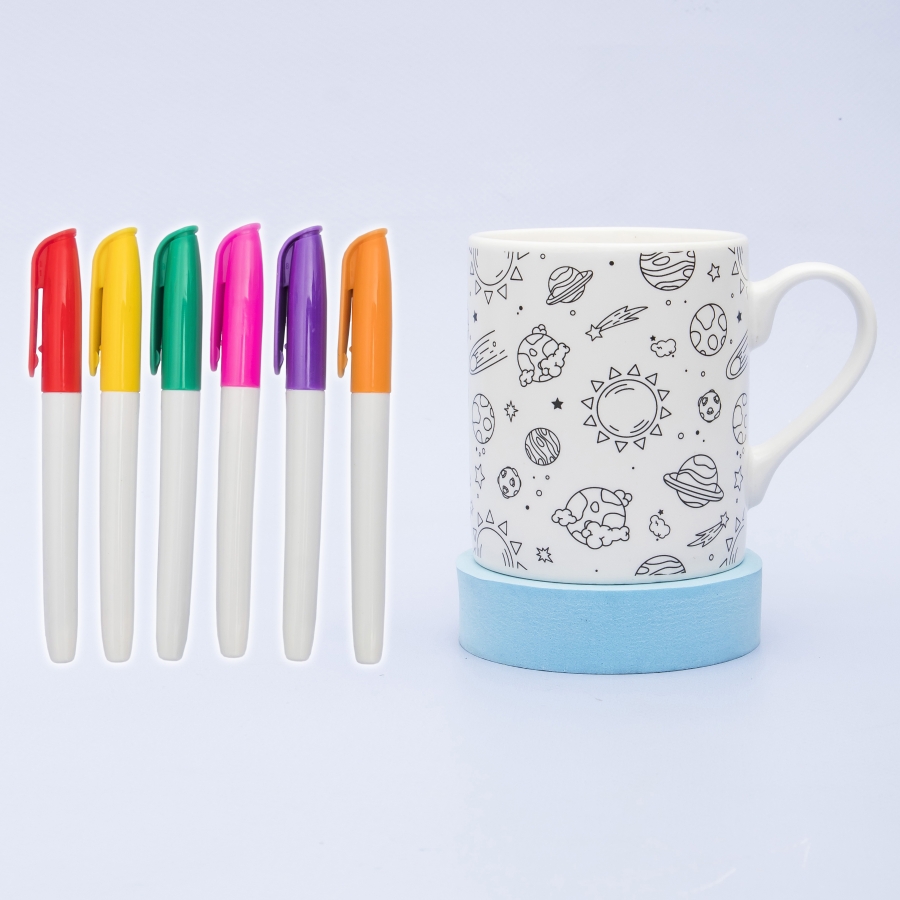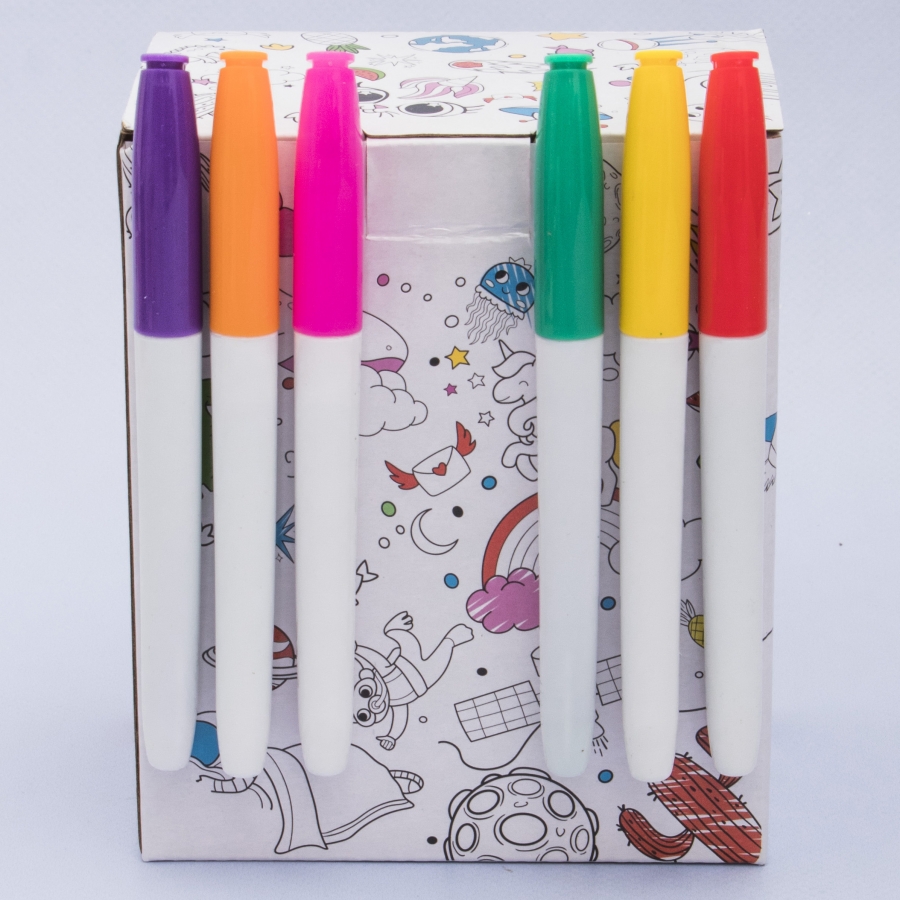 - Фломастеры: В комплект входят 6 ярких фломастеров — красный, желтый, зеленый, розовый, фиолетовый и оранжевый. Размер каждого фломастера: 140х15х13 мм, удобный для рук ребенка, с весом всего 8 г. Эти фломастеры легки в использовании и специально разработаны для раскраски керамических поверхностей.