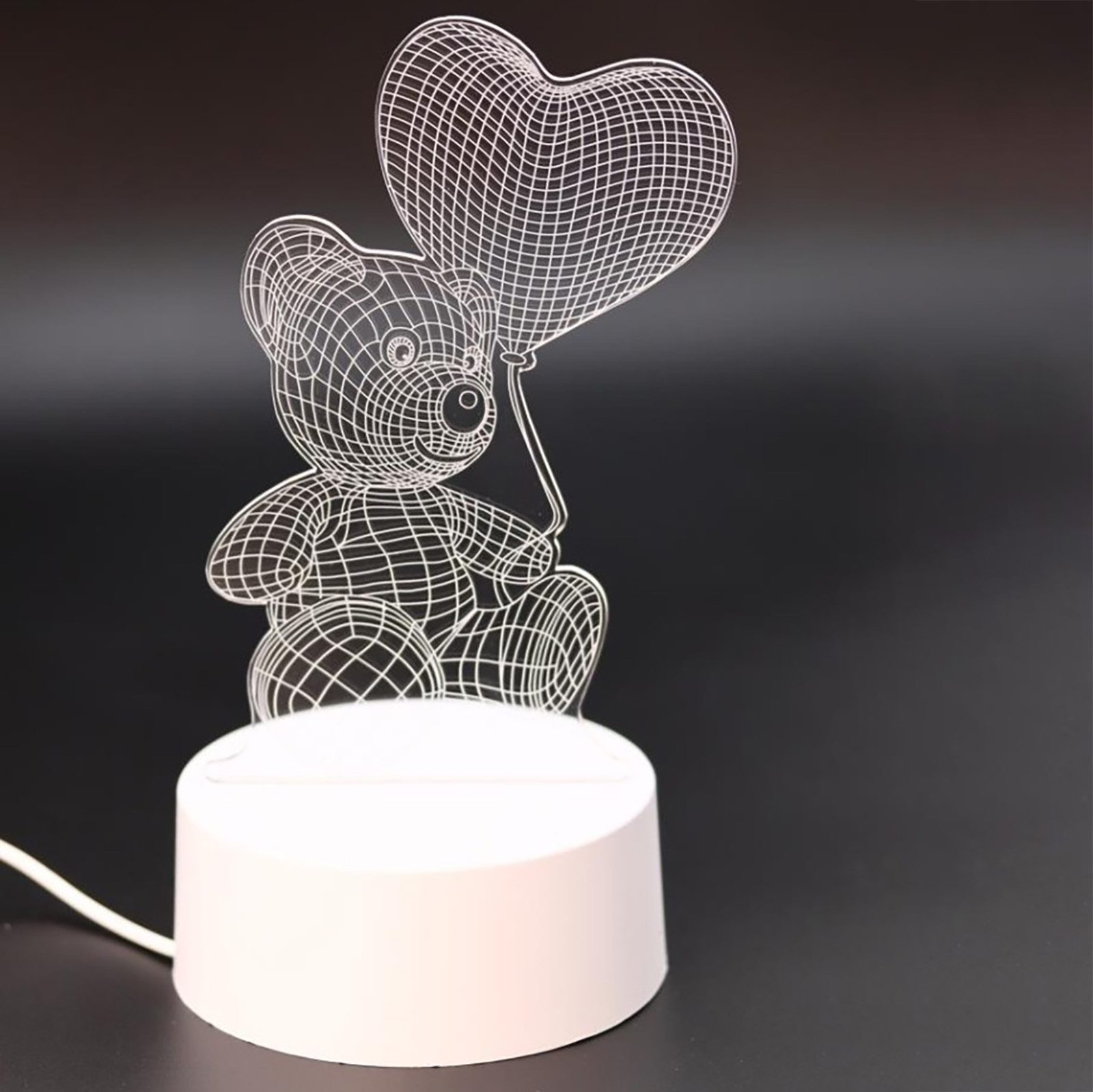 Ночник "Bear and balloon" LED, USB (9х19 см) — это элегантный и современный светильник, способный наполнить любое пространство уютом и атмосферой. Его особенность заключается в 3D-эффекте, который достигается за счет акриловой пластины с лазерной гравировкой — это создает иллюзию объёмности и привлекает внимание.