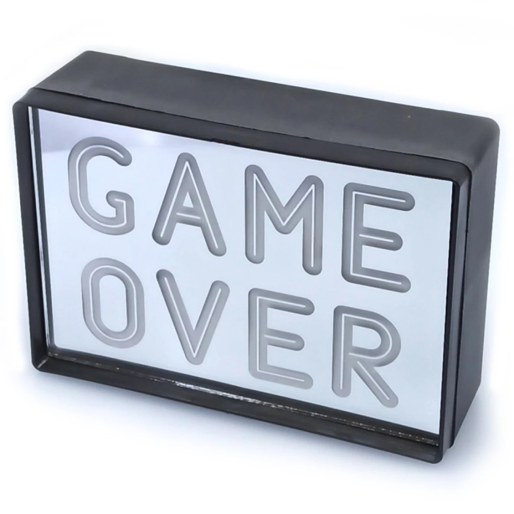 Светильник Game Over - это отличный предмет для декора помещения. Прекрасно будет смотреться на полке с любимыми играми и коллекционными фигурками персонажей. Он легкий и компактный, что позволяет легко его транспортировать и работает от батареек, благодаря которым вы можете использовать его в любом месте. Мягкое и теплое свечение ламп создаст уютную атмосферу, что позволит самым маленьким любителям игр заснуть, не боясь темноты. Необычный светильник послужит оригинальным подарком для геймера любого возраста.