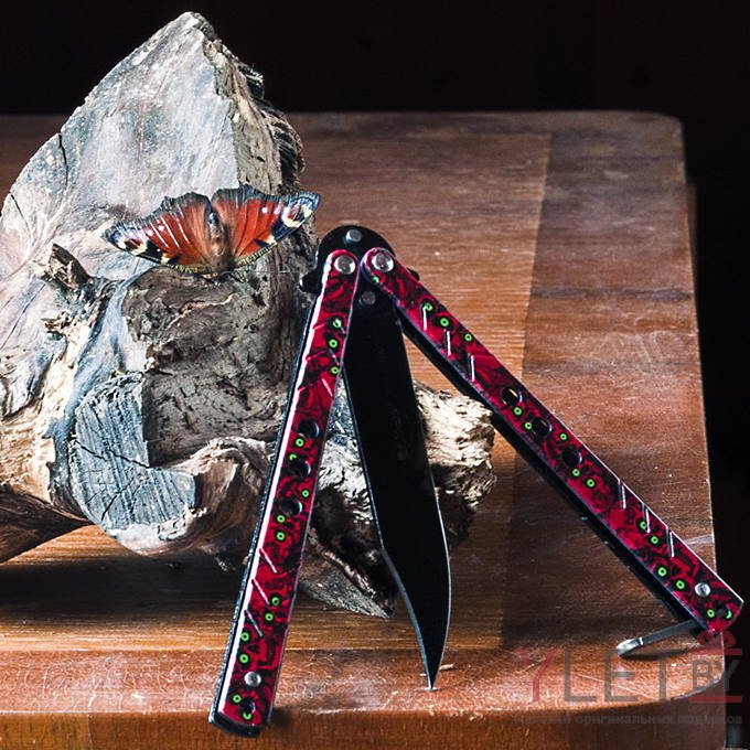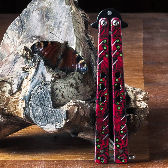 Складной нож бабочка Краcные черепа