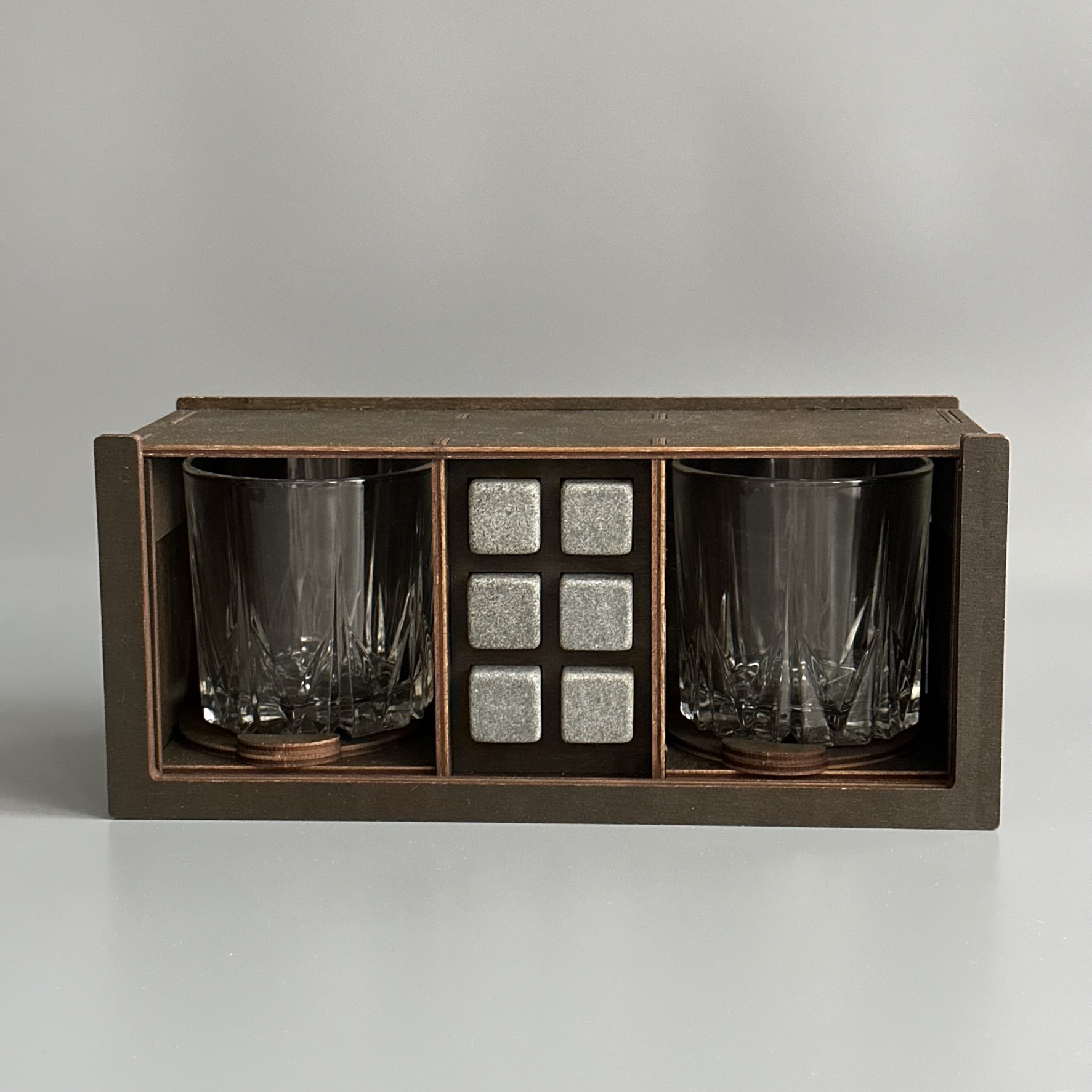 Этот набор создан для истинных ценителей и гурманов виски, которые знают, как правильно наслаждаться каждым глотком. Он станет отличным подарком для тех, кто ценит качество, стиль и традиции. В состав набора входят два изысканных стакана, шесть охлаждающих камней и две удобные подставки.