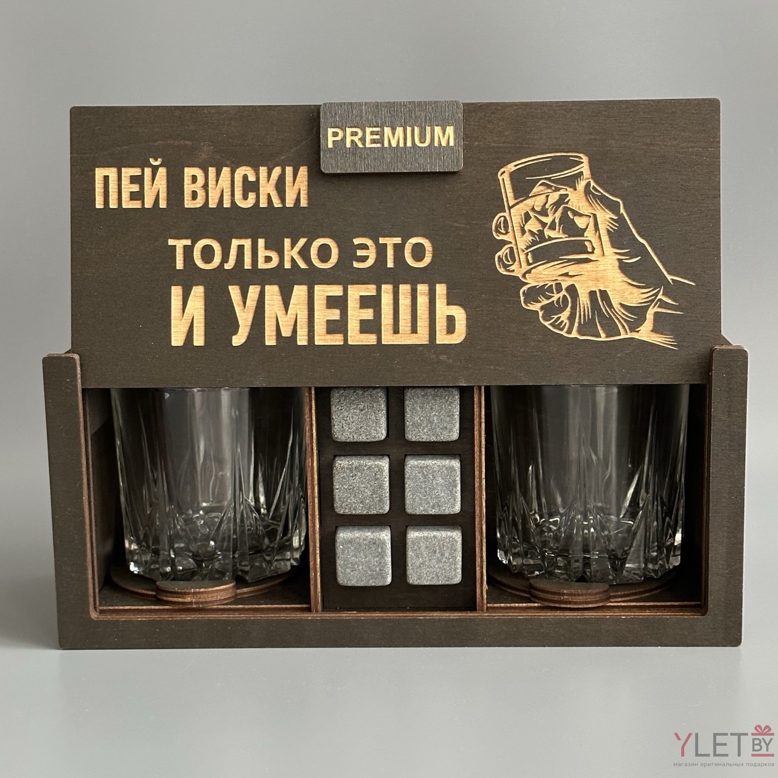 Подарите набор для виски Premium “Пей виски только это и умеешь” — это не просто аксессуар, а настоящая философия наслаждения жизнью!