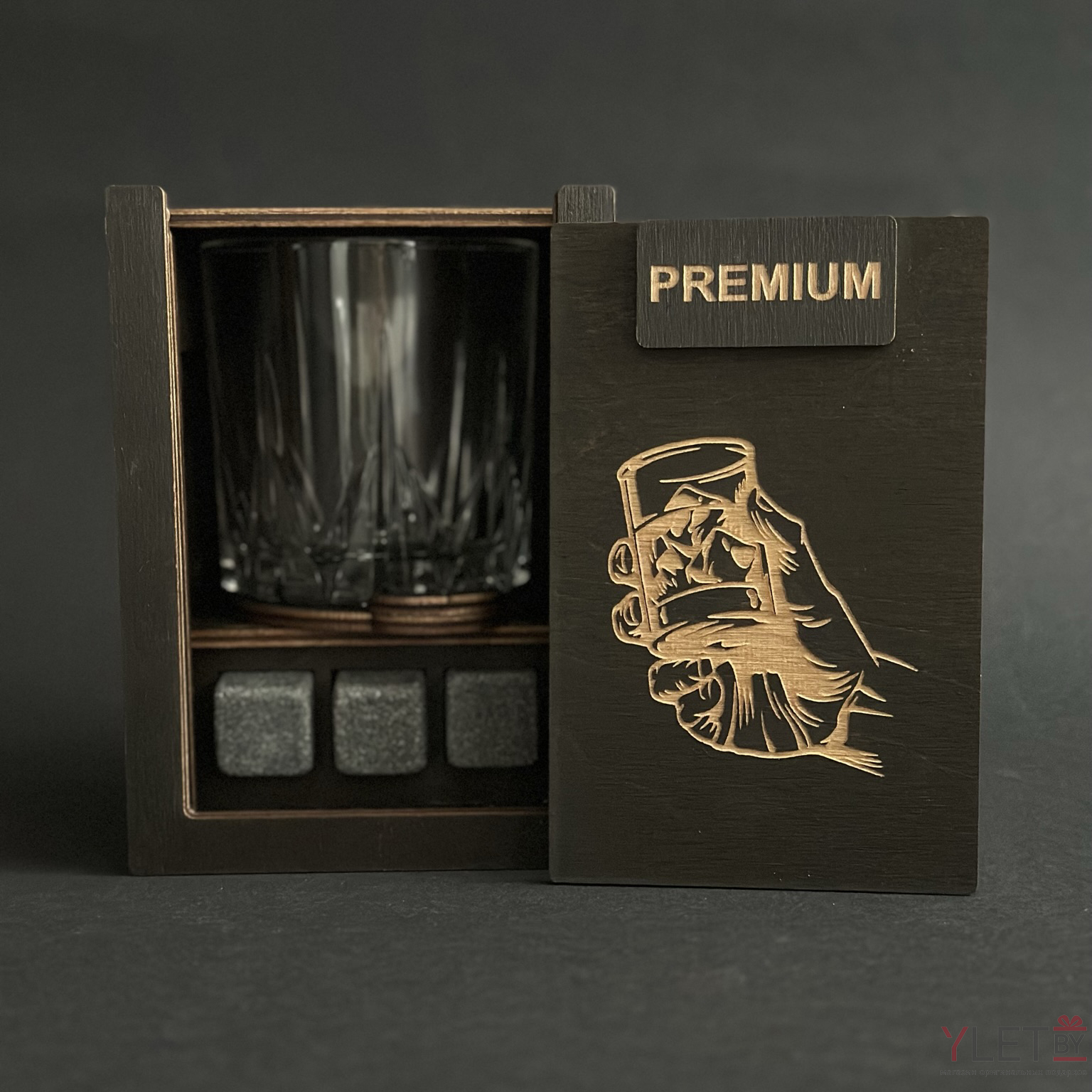 Набор для виски Premium «Стакан в руке» (cтакан + 3 камня)