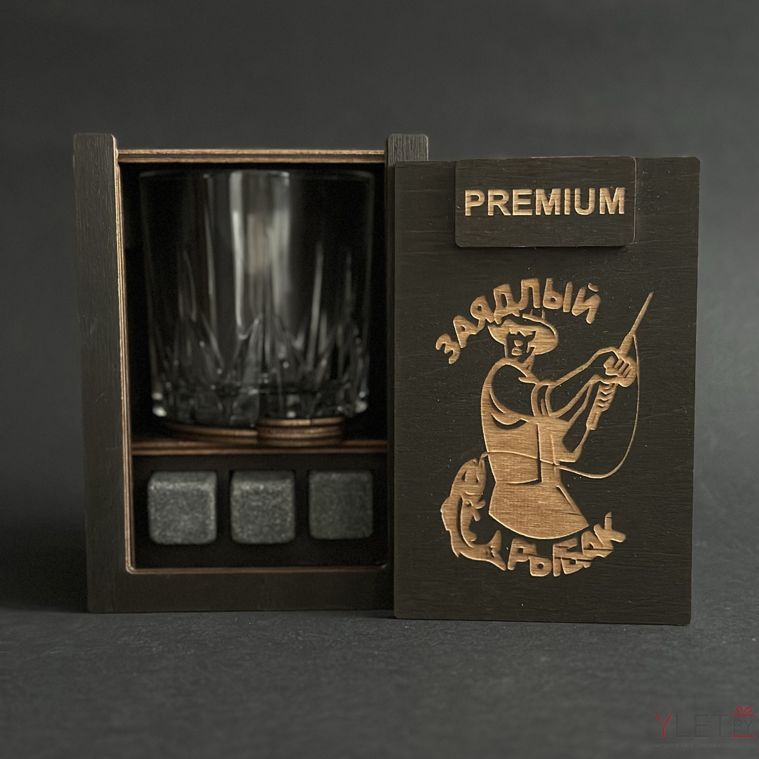 Набор для виски Premium « Заядлый рыбак» (cтакан + 3 камня)