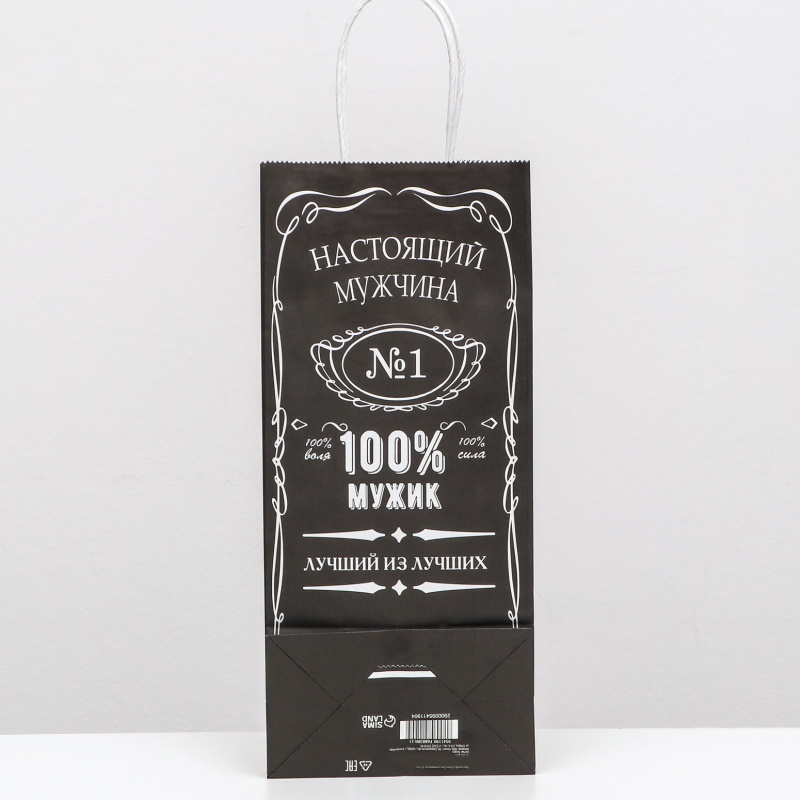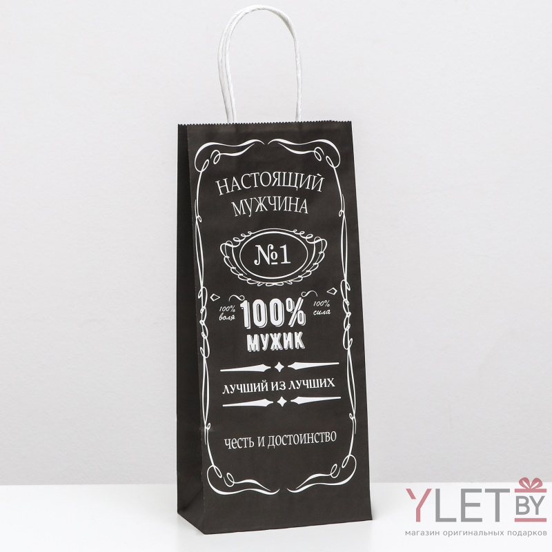 Пакет крафт под бутылку Настоящий мужчина, 14 х 8 х 32 см