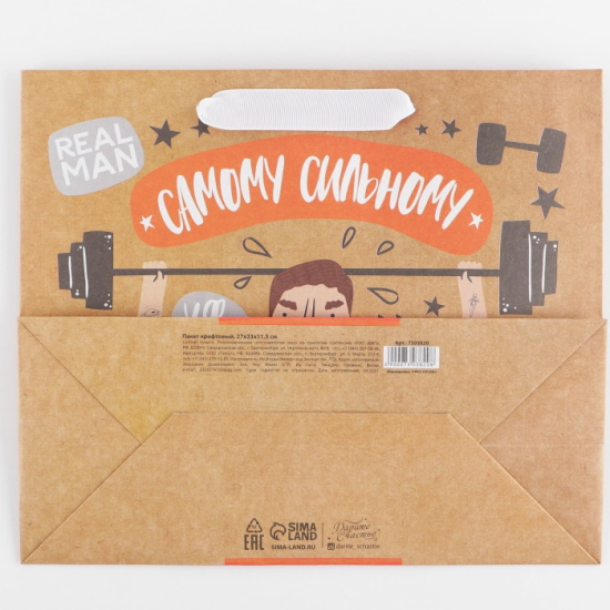 Пакет крафтовый Самому сильному, ML 23 х 27 х 11.5 см