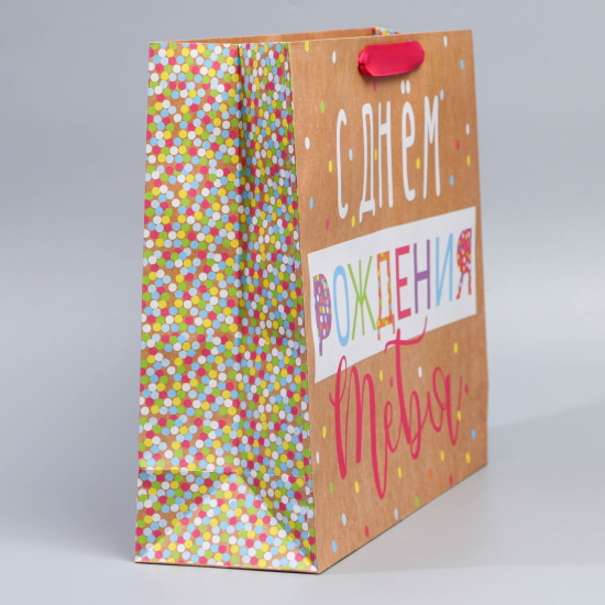 Пакет крафтовый вертикальный С Днём Рождения! 31 × 40 × 9 см