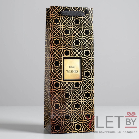 Пакет ламинированный под бутылку Best wishes, 13 x 36 x 10 см
