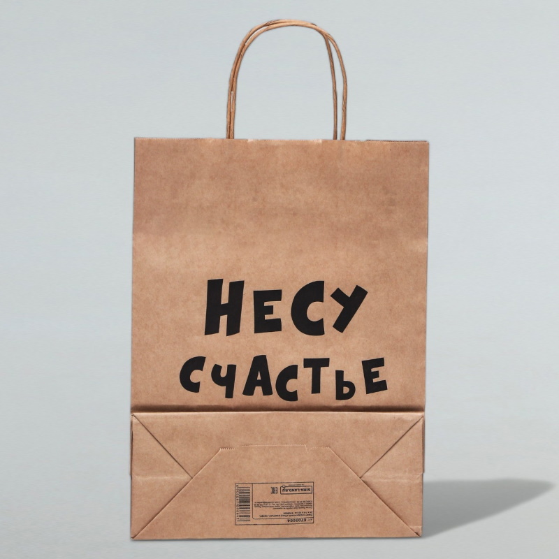 Пакет подарочный Несу счастье, крафт, 24 х 10,5 х 32 см