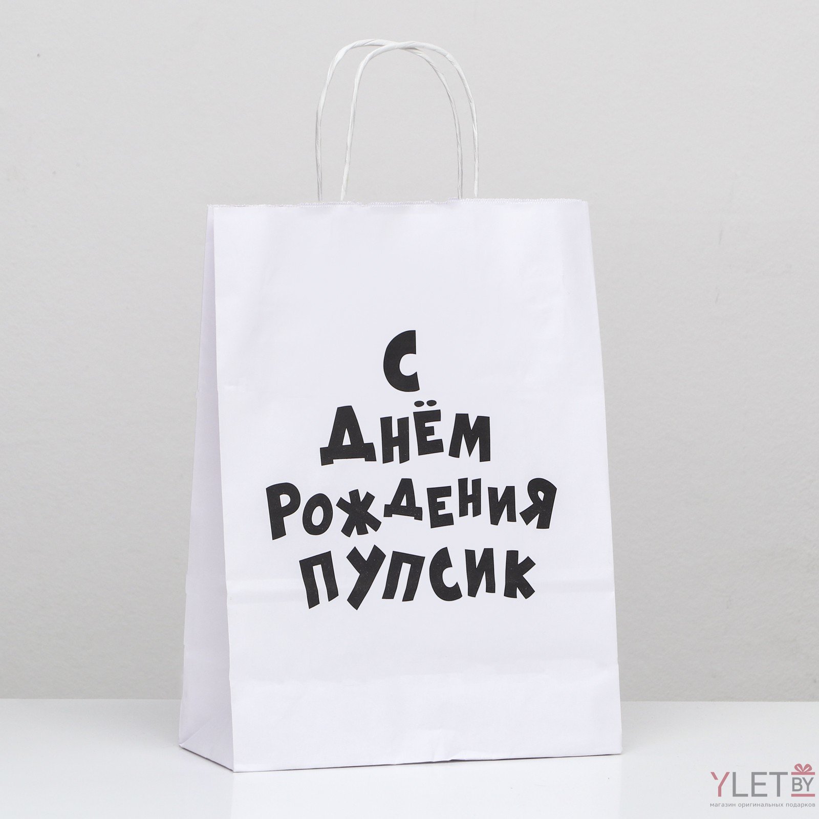 Пакет подарочный с приколами, Пупсик, белый, 24 х 10.5 х 32 см