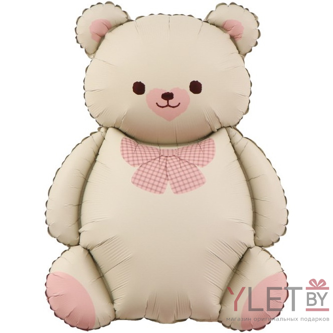 Шар (35''/89 см) Фигура, Мишка с бантом, Бежевый/Розовый