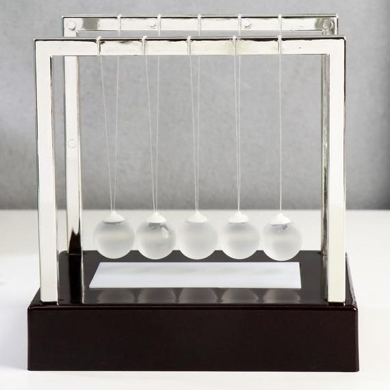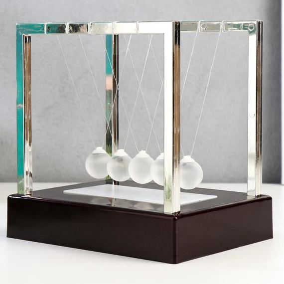 Шары Ньютона сегодня пользуется огромной популярностью у наших клиентов. Система состоит из подставки и пяти металлических шариков, которые подвешены на леске. Для активации маятника вам необходимо отвести один шарик в сторону и отпустить его. Затем наблюдайте, как шарики с противоположной стороны начинают двигаться в зеркальном отображении с той же скоростью. Через определенное время шарики останавливаются. Продолжительность движения зависит от размера и веса шариков: чем тяжелее и больше шарики, тем дольше процесс, и наоборот.