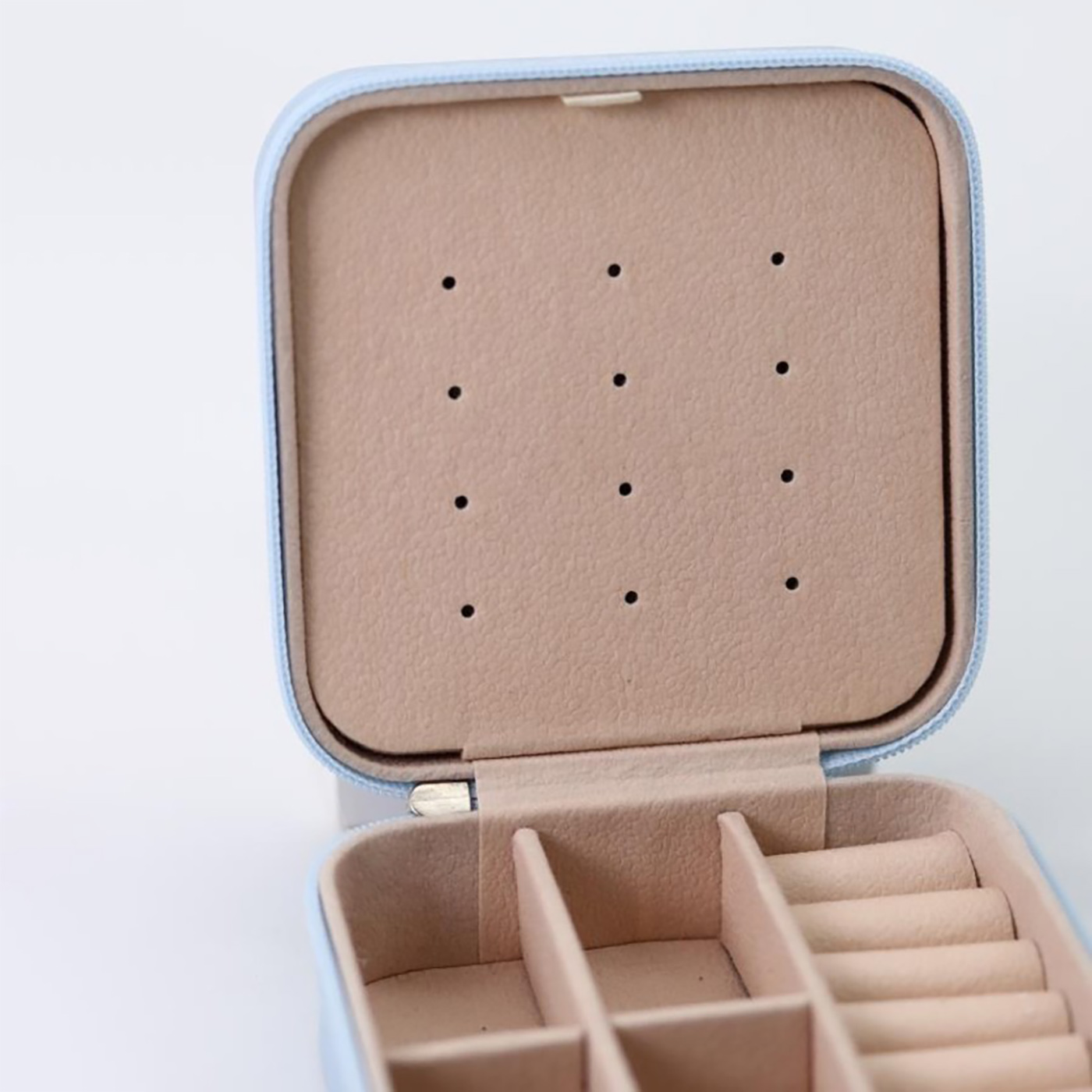 Компактный размер шкатулки (9,5 х 9,5 х 4,7 см) делает её идеальным спутником в путешествиях — она легко умещается в сумке и не занимает много места. Лёгкий вес в 112 граммов позволяет брать её с собой куда угодно, не чувствуя дискомфорта. Закрывающаяся на молнию, шкатулка обеспечивает безопасность ваших украшений, защищая их от повреждений и загрязнений. Позвольте этой элегантной шкатулке стать вашим верным помощником в организации и хранении ваших драгоценностей, добавляя нотку стиля в каждый ваш день!