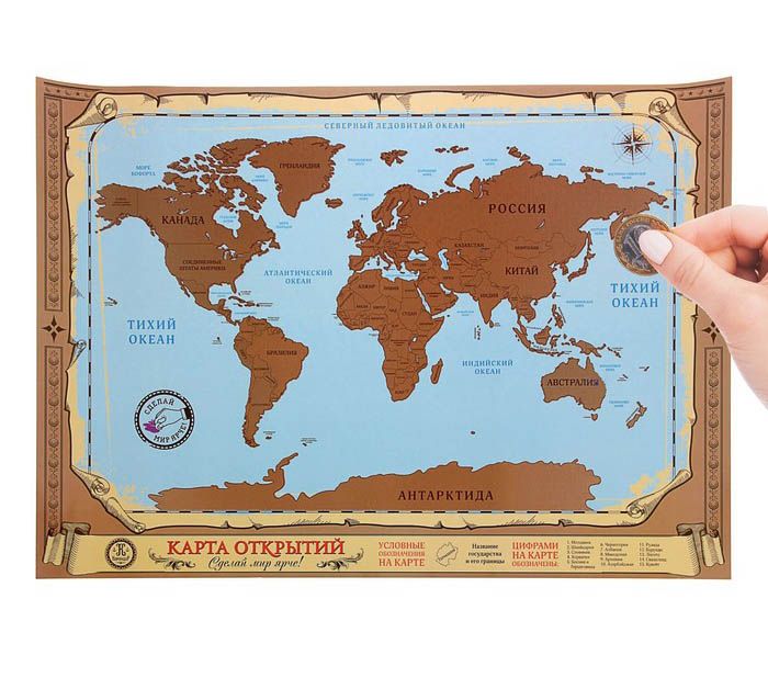 Вернувшись из путешествия, вы сможете стереть скретч-слой и отметить страну, которую посетили. А также обозначить все места, где когда-либо побывали до этого.