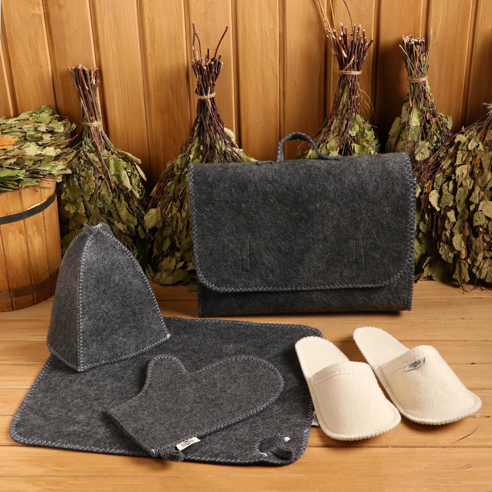 Набор банный портфель 5 предметов серый, без вышивки, войлок