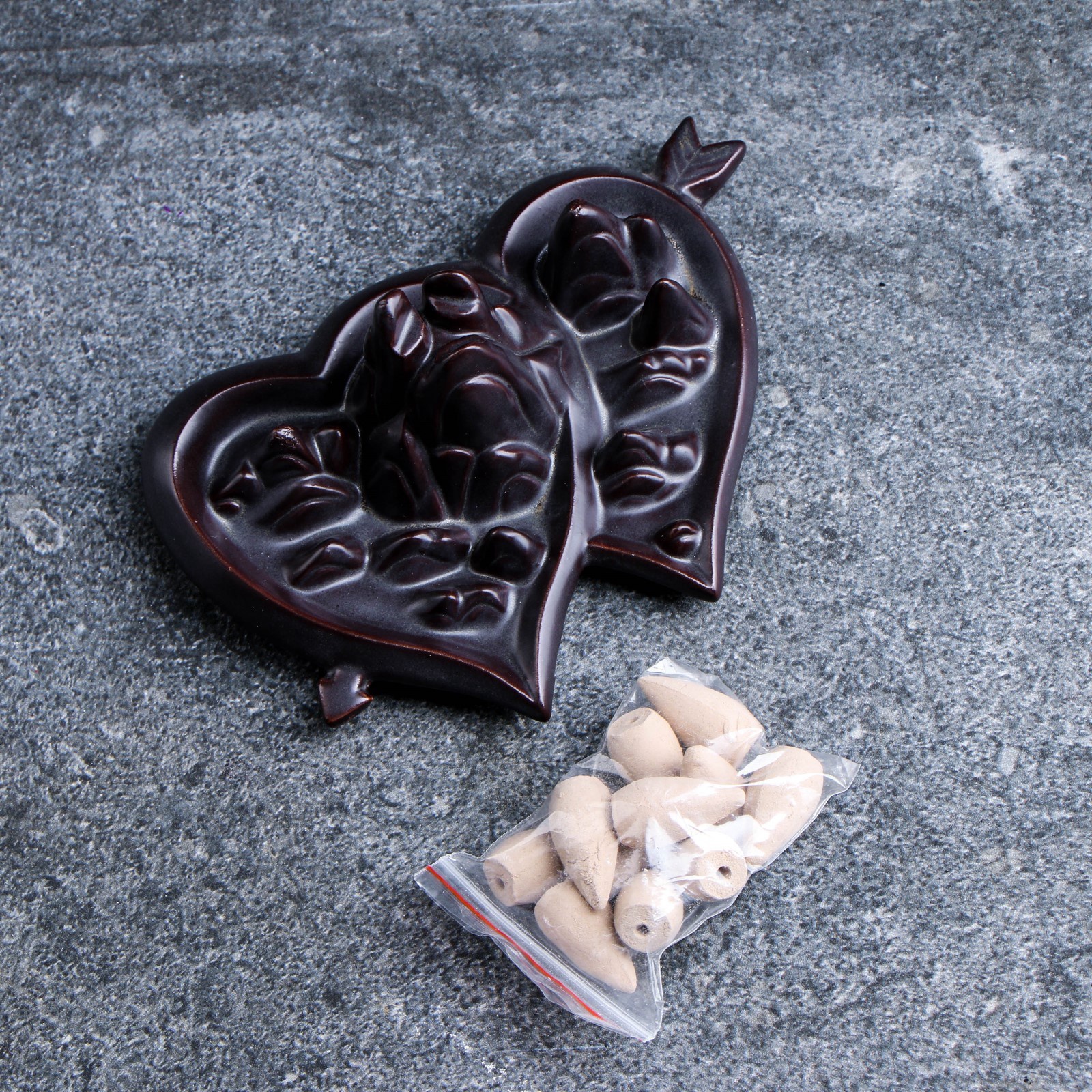 Подставка для благовоний «Два сердца», набор благовоний конусы, стелющийся дым, 18×11×6 см