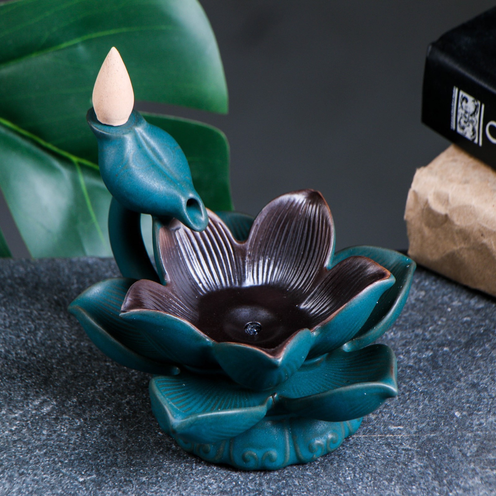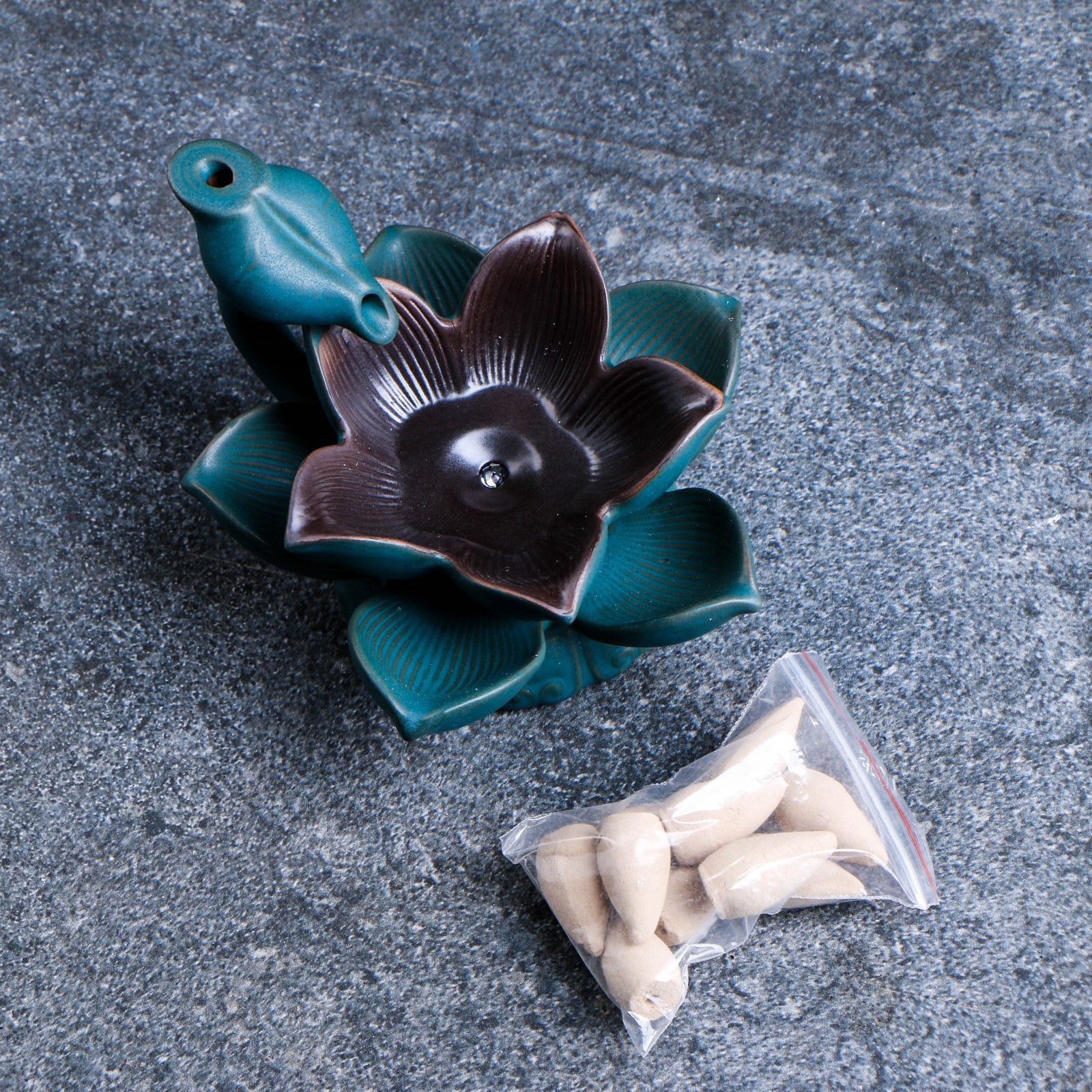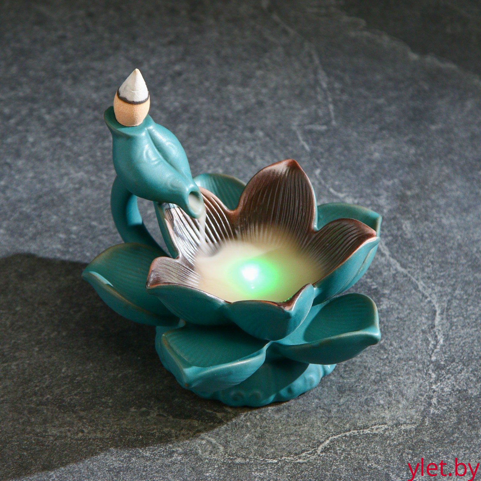 Подставка для благовоний «Лотос совершенства», набор благовоний конусы, стелющийся дым, 10×14×14 см, с подсветкой