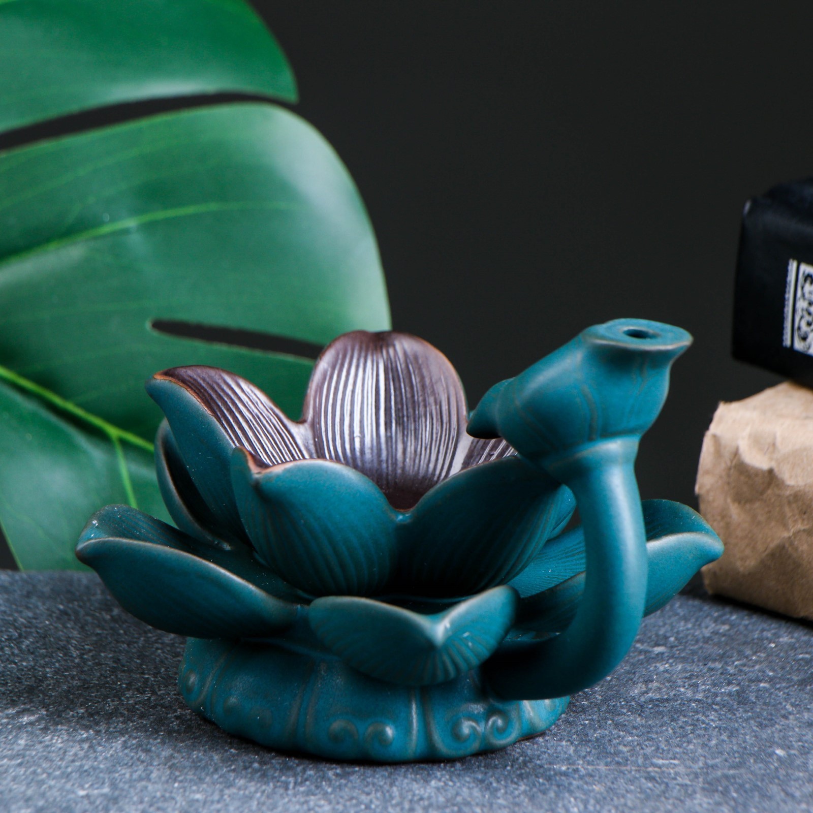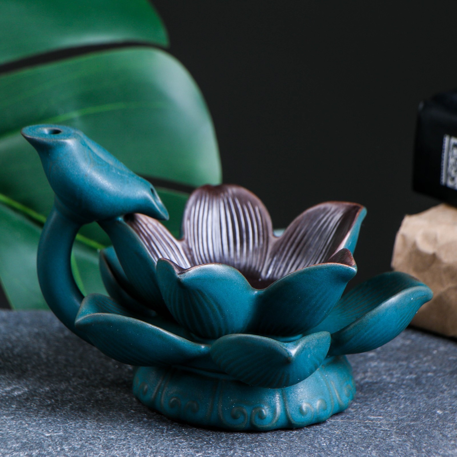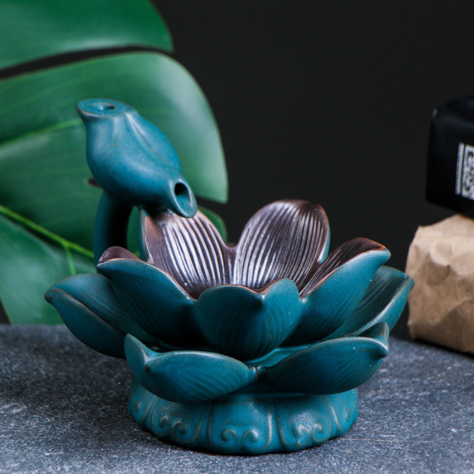 Подставка для благовоний «Лотос совершенства», набор благовоний конусы, стелющийся дым, 10×14×14 см, с подсветкой