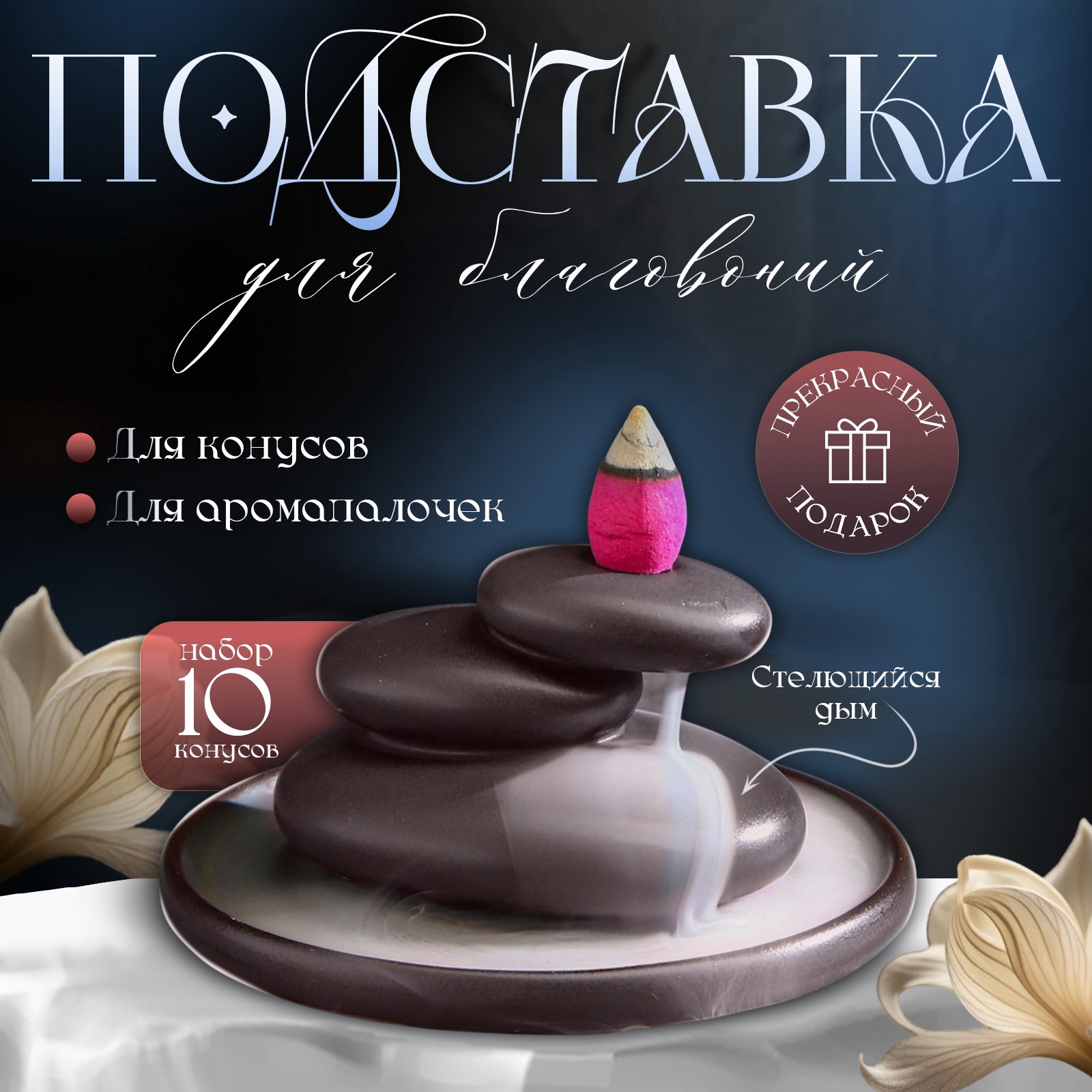 Этот элегантный аксессуар не только обеспечит комфортное сжигание конусных благовоний, но и станет стильным элементом декора вашего интерьера.