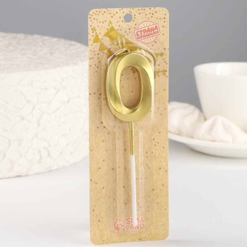 Свеча в торт на шпажке Грань, Цифра 0 Золотая