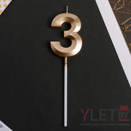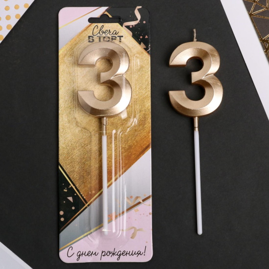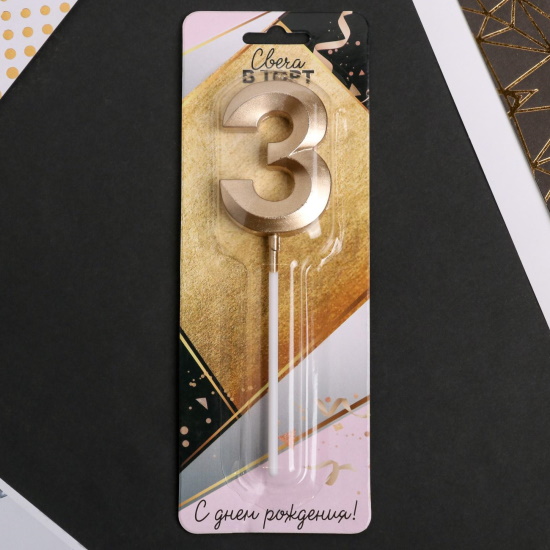 Свеча в торт Цифра 3 Шампань