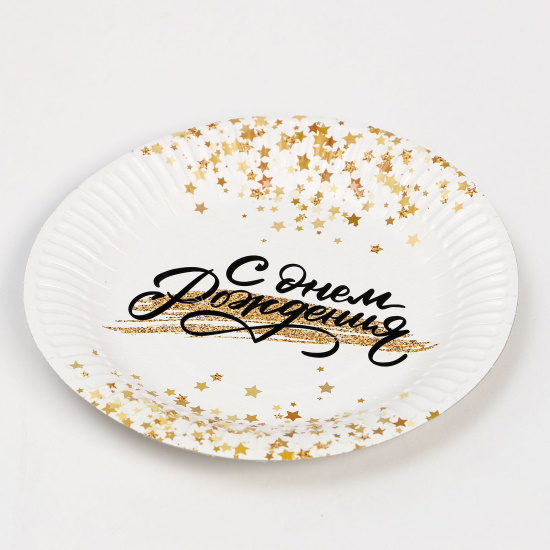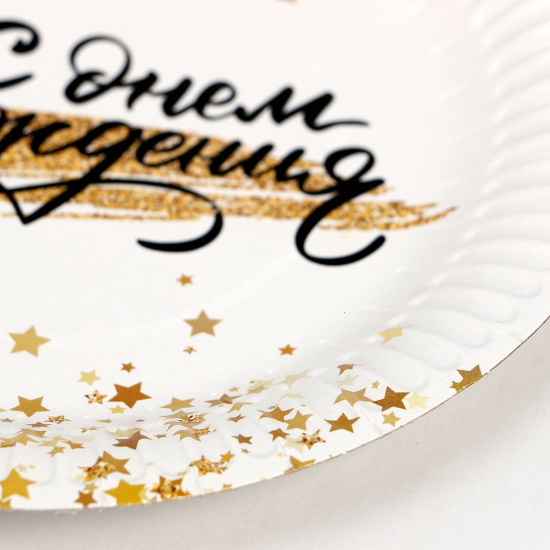 Тарелка бумажная С Днём рождения. Золотой звездопад, набор 6 шт, 18 см