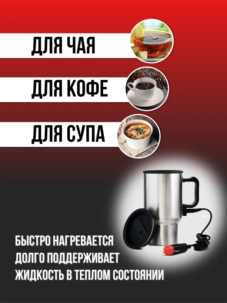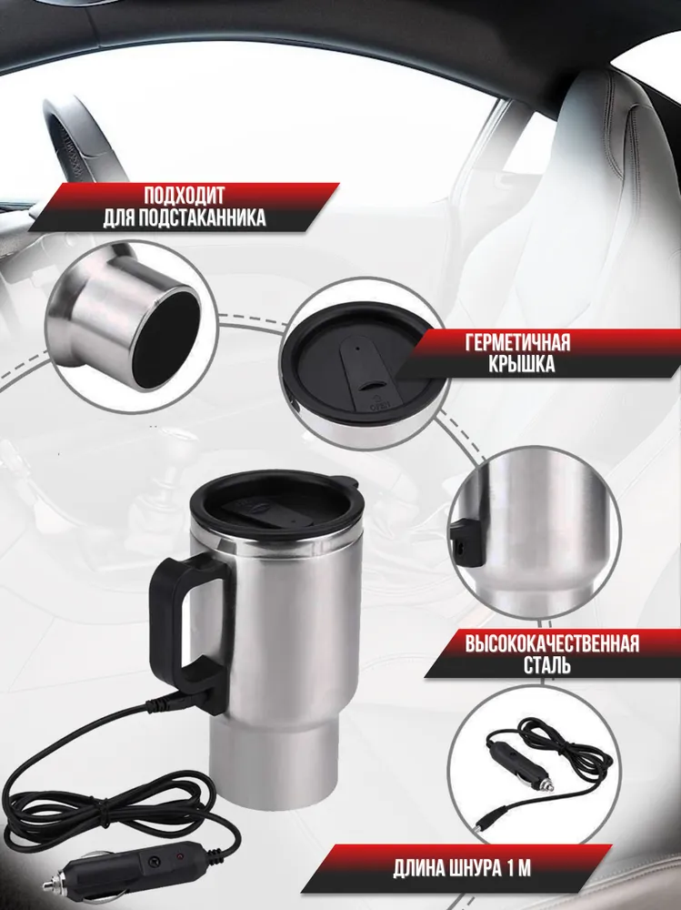 Автомобильная термокружка с подогревом от прикуривателя — незаменимая вещь для тех, кто проводит свой день в дороге. Автокружка будет сохранять температуру любимого напитка столько времени, сколько потребуется, и не отвлечёт вас от работы или управления автомобилем.