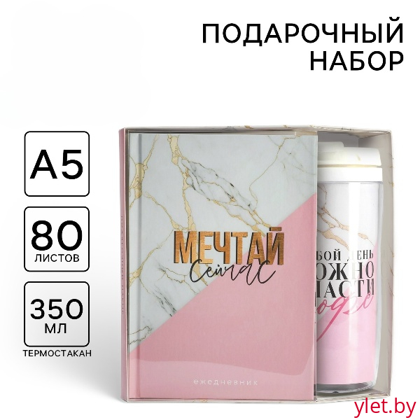 Подарочный набор ежедневник А5, 80 л. и термостакан 350 мл. «Мечтай сейчас»