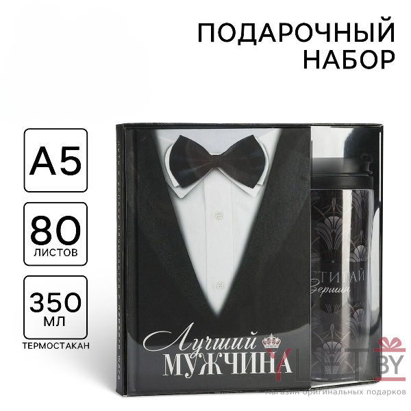 Подарочный набор ежеднкевник А5, 80 л. и термостакан 350 мл. «Лучший мужчина»