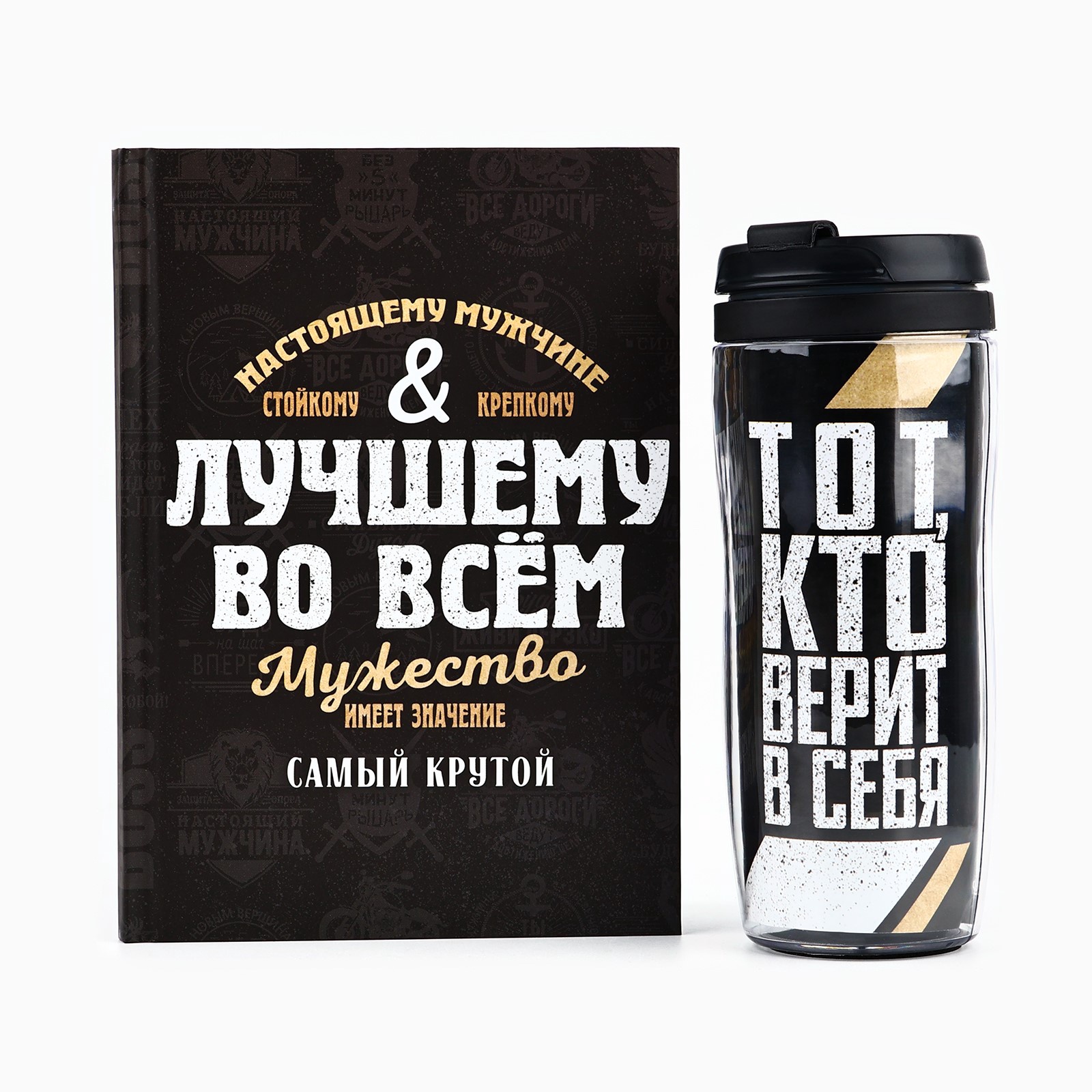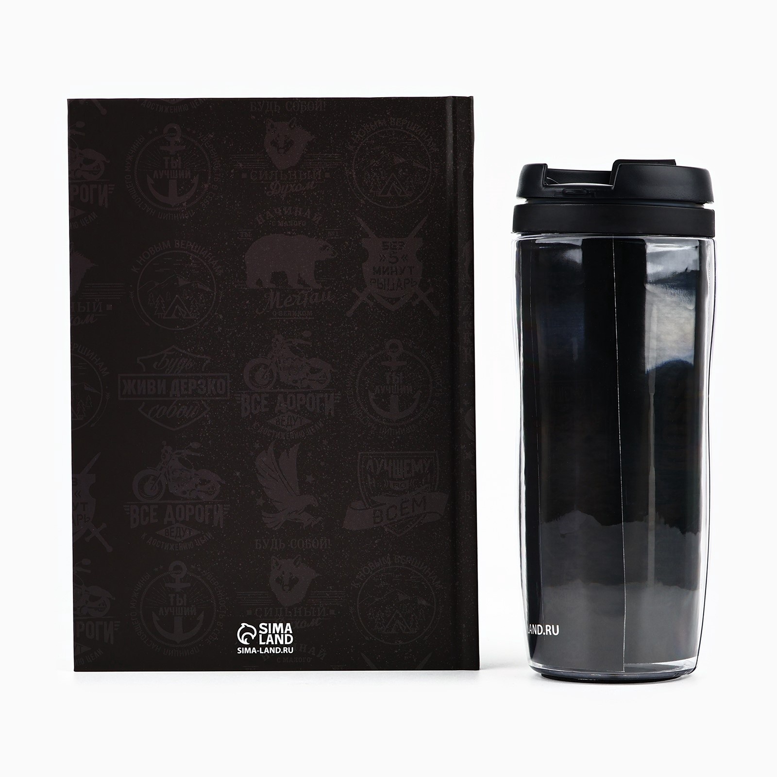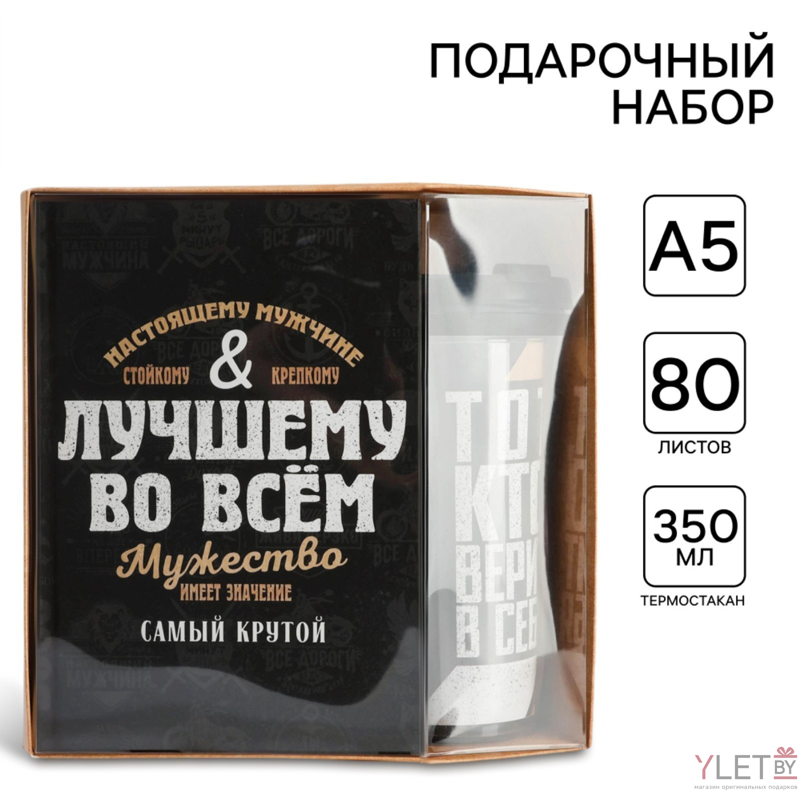 Подарочный набор: ежеднкевник в твердой обложке А5, 80 л. И термостакан 350 мл «Лучшему во всем»