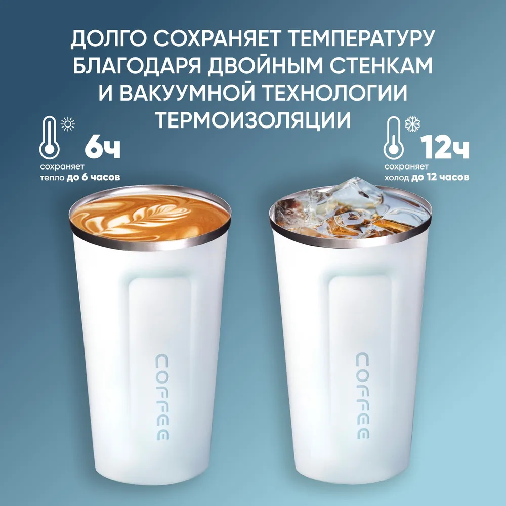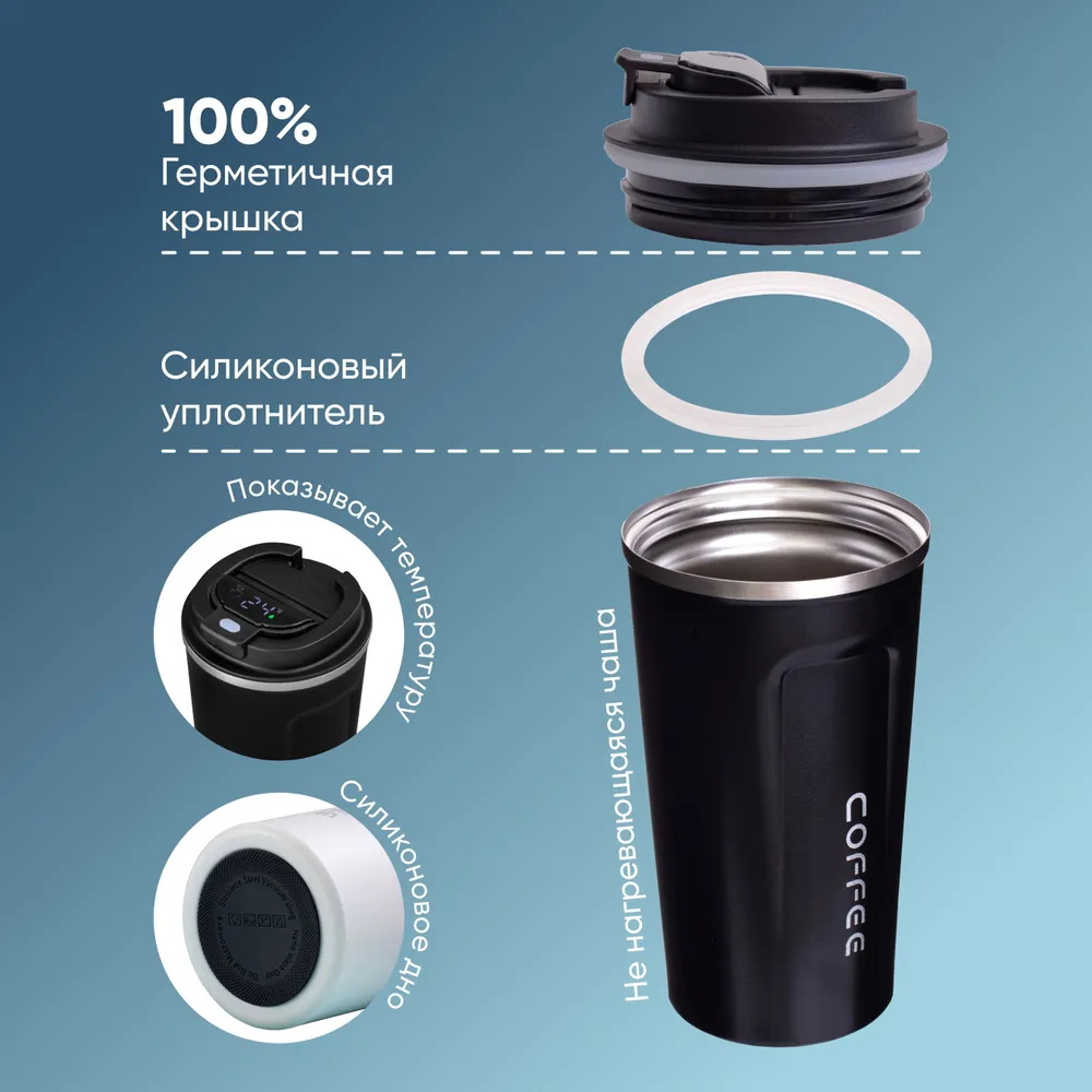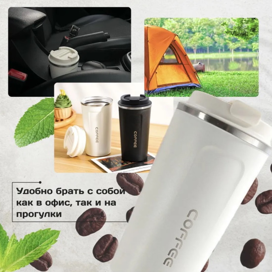 Представляем вам термокружку! С объемом 380 мл она станет вашим надежным спутником в дороге, обеспечивая возможность наслаждаться горячим кофе с собой. Эта кружка термо оснащена инновационным датчиком температуры, который позволяет контролировать идеальную степень нагрева вашего напитка. Металлическая конструкция гарантирует долговечность и надежность, а функция непроливайки делает ее отличным выбором для активных людей и путешественников. Удобная крышка с кнопкой обеспечивает легкий доступ к вашему любимому кофе, а стильный дизайн делает эту подарочную термо кружку прекрасным презентом для близких. Не упустите возможность сделать каждый ваш день более комфортным с нашей походной термокружкой — идеальным решением для всех любителей кофе!