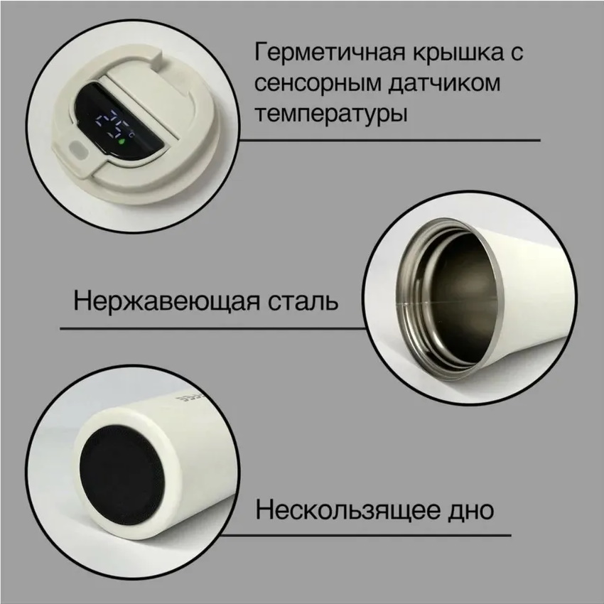 Термокружка с датчиком температуры 380 мл, Белая