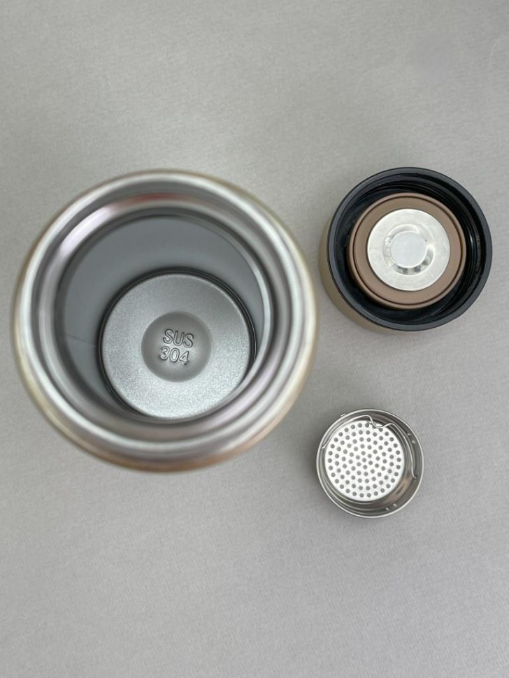 В комплект входит сетка-фильтр, что делает использование термоса ещё более удобным. Каждая единица упакована в индивидуальный полиэтиленовый пакет и картонную коробку, что обеспечивает защиту при транспортировке. Размер упаковки составляет 23 х 6,5 х 6,5 см.