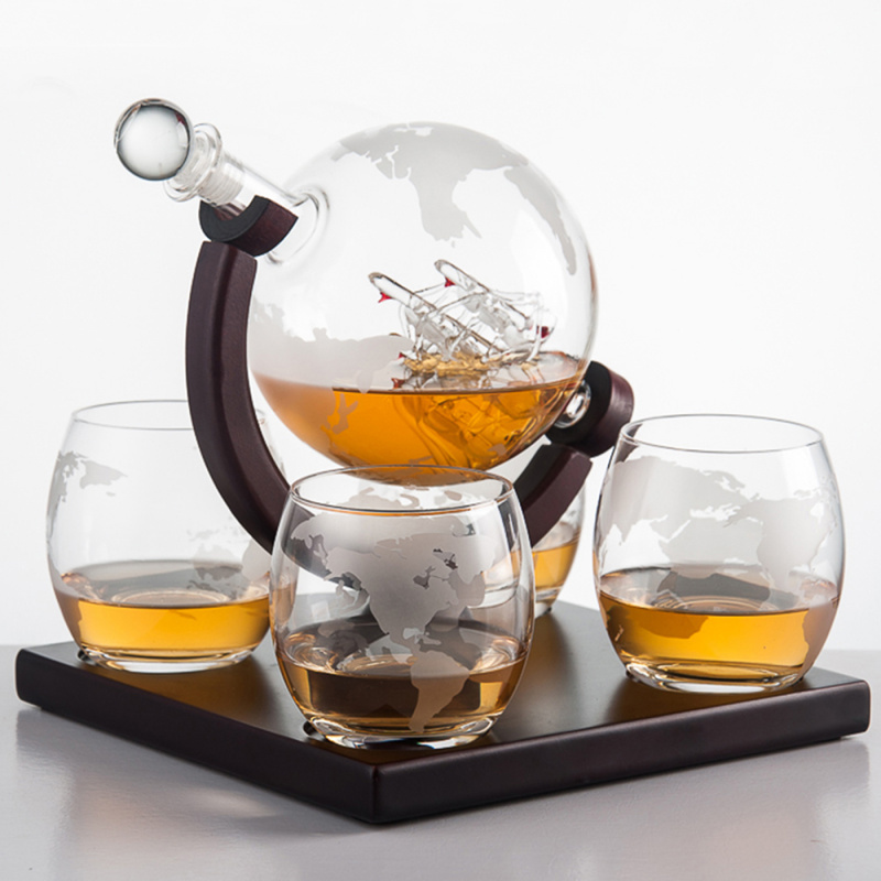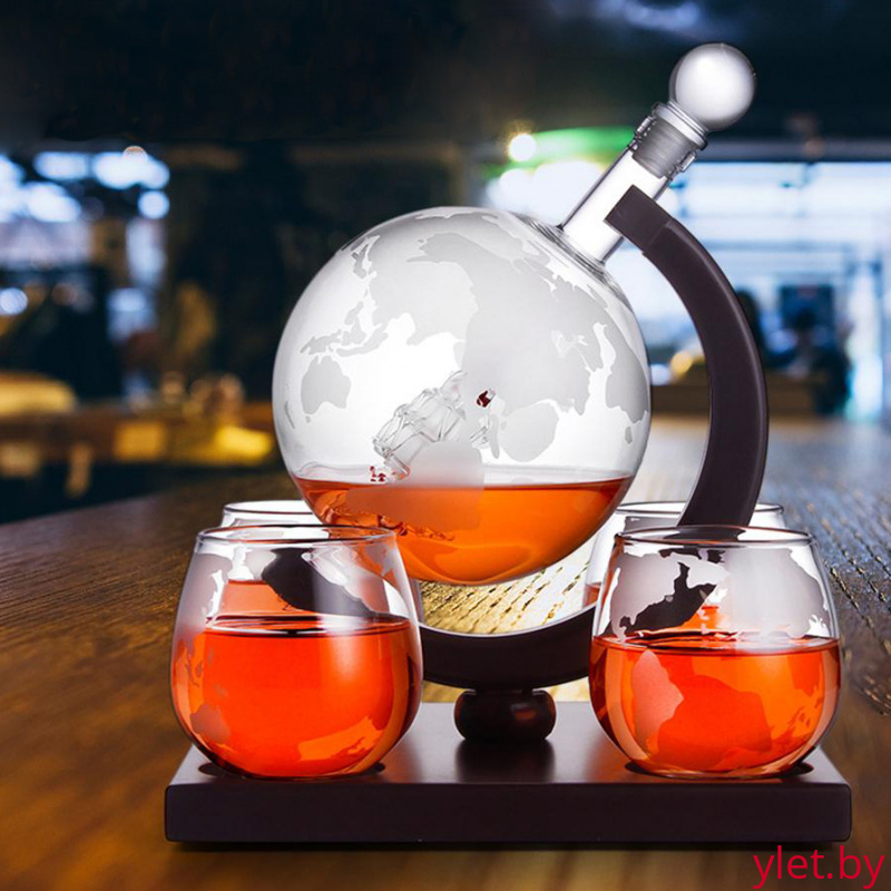 Представляем вашему вниманию шикарный набор для виски в форме глобуса — настоящий шедевр ручной работы, который станет центром притяжения в любом интерьере. Этот уникальный набор включает элегантный декантер на подставке из красного дерева и четыре изящных стакана, что делает его идеальным дополнением к вашему бару или замечательным подарком для тех, кто ценит качественные алкогольные напитки.