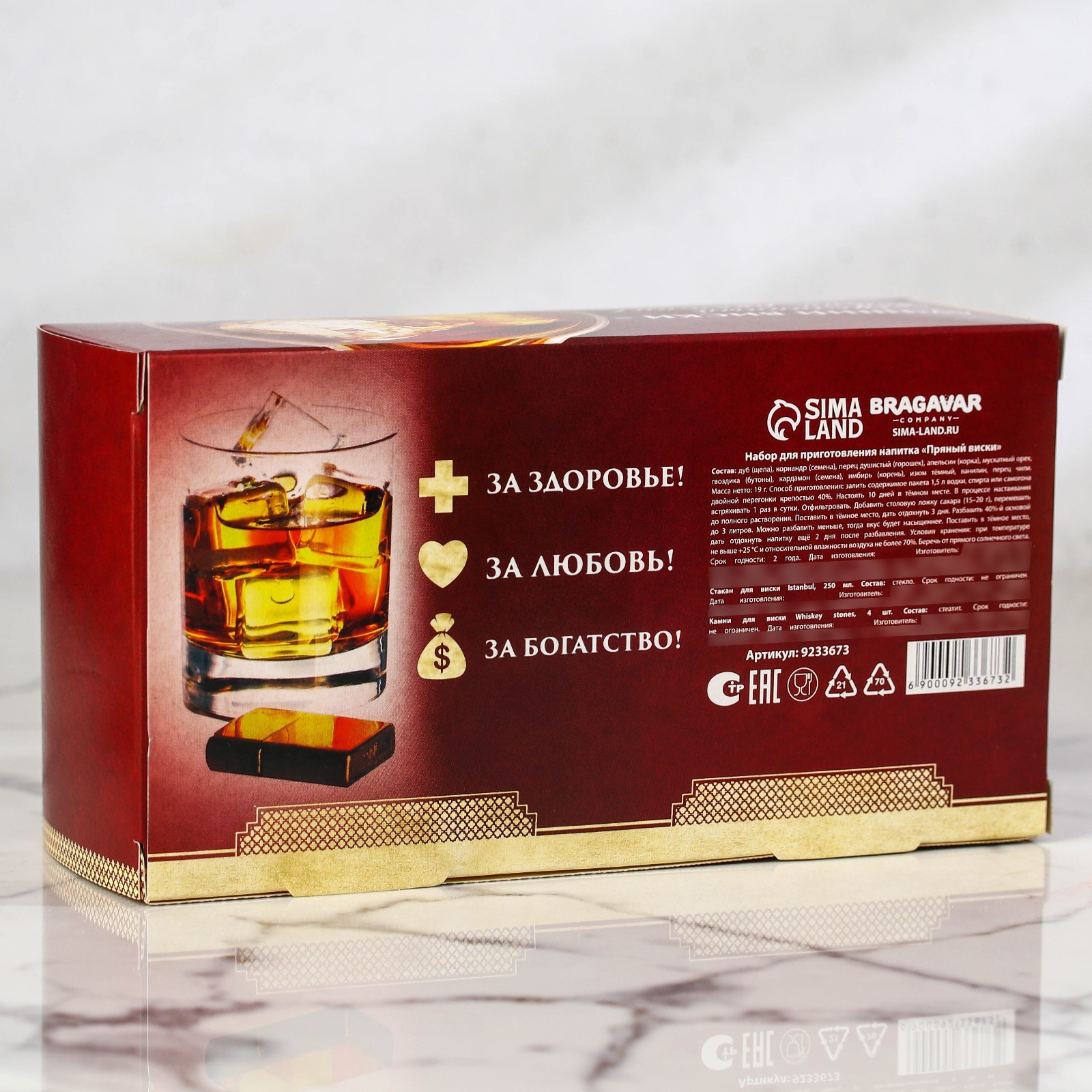 Подарочный набор для приготовления настойки «Пряный виски»: набор трав и специй 19 г., стакан 250 мл., камни 4 шт.
