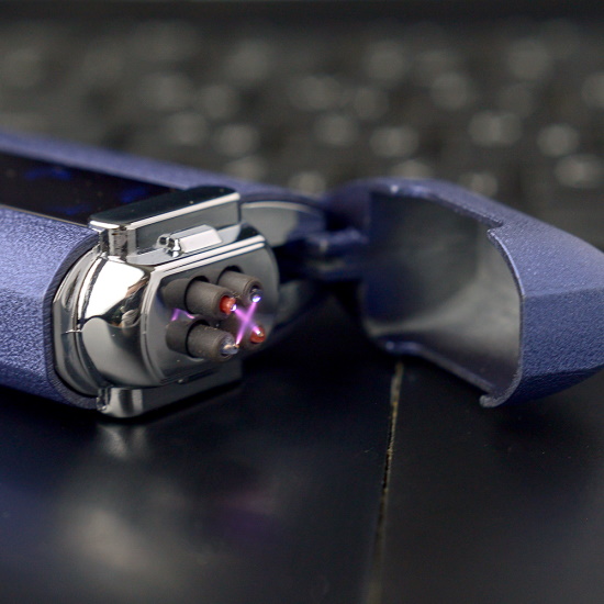 Электроимпульсная USB-зажигалка, работает по принципу миниатюрной молнии, между четырьмя контактами возникает мощный разряд электроимпульсов, которые поджигают любые предметы попавшие в поле разряда. Зажигалка имеет USB выход и заряжается от компьютера либо зарядного устройства.